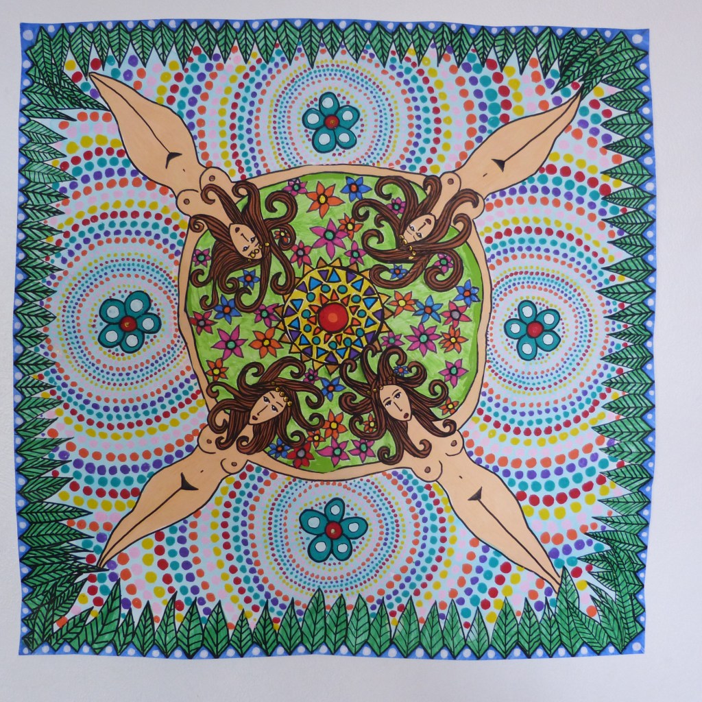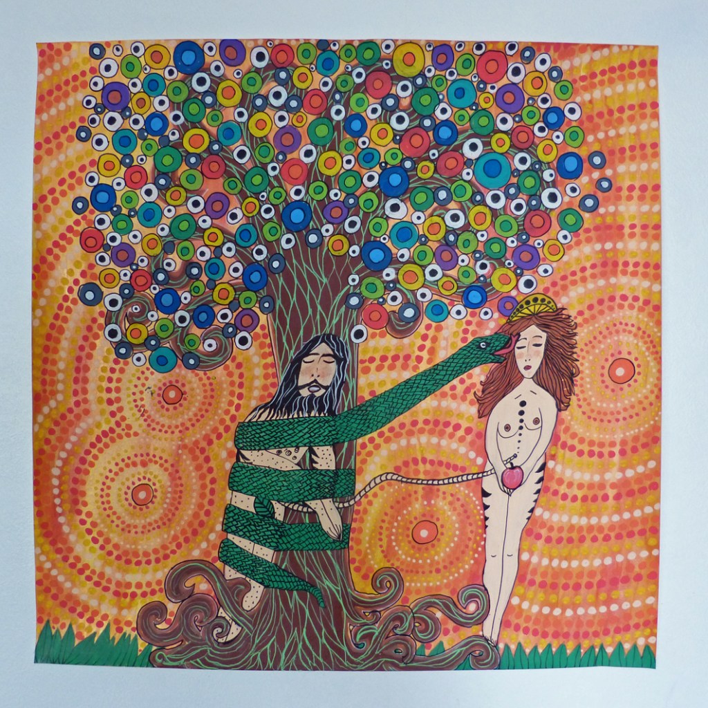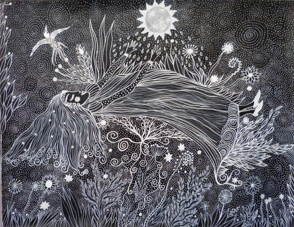 (dessin sur papier fort, 50×50 cm, techniques mixtes)