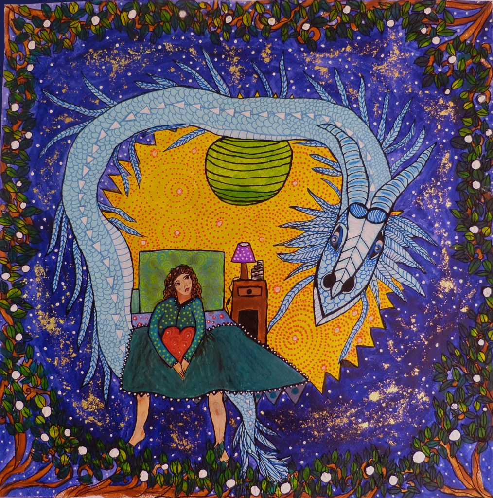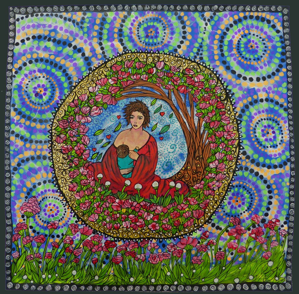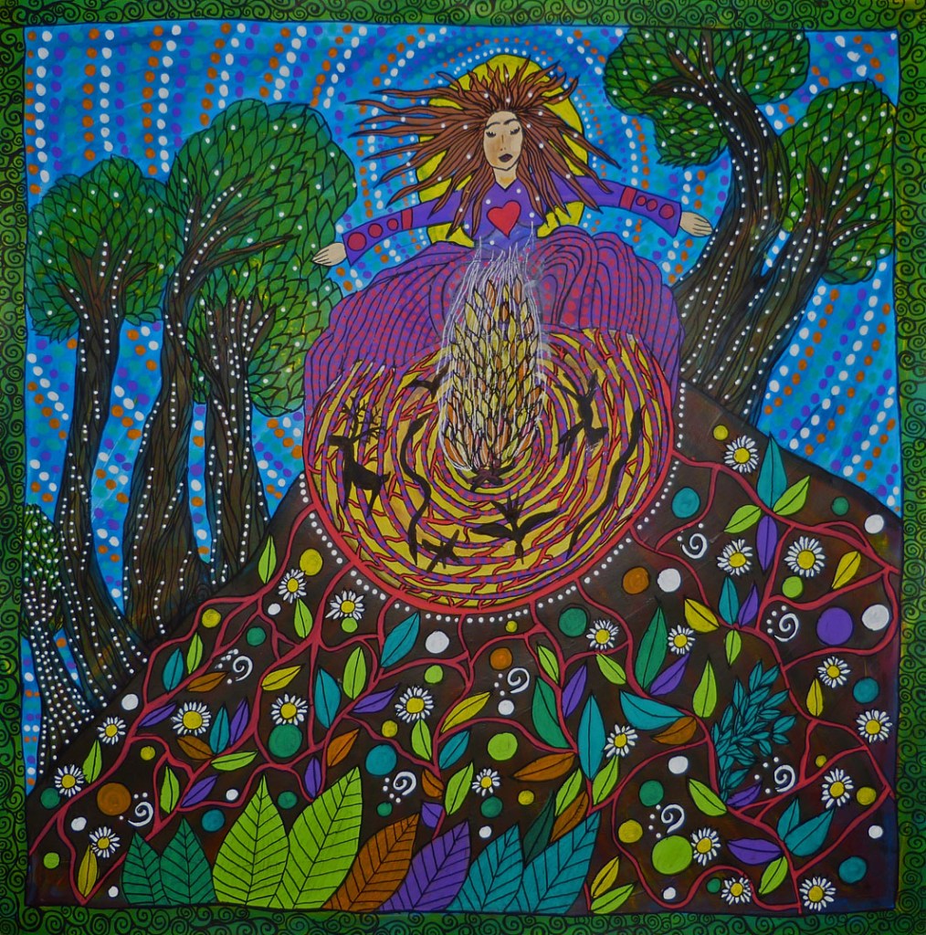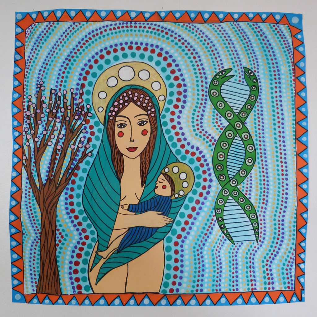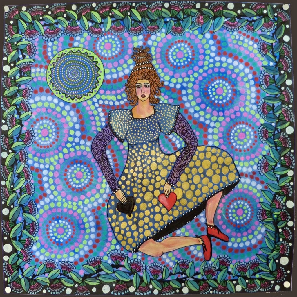 (dessin 50×50, sur papier fort, techniques mixtes)