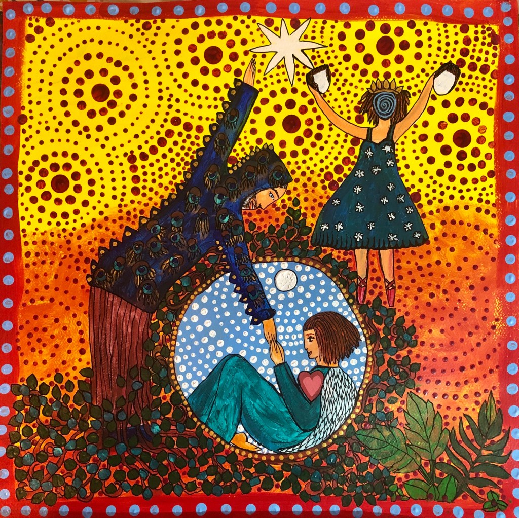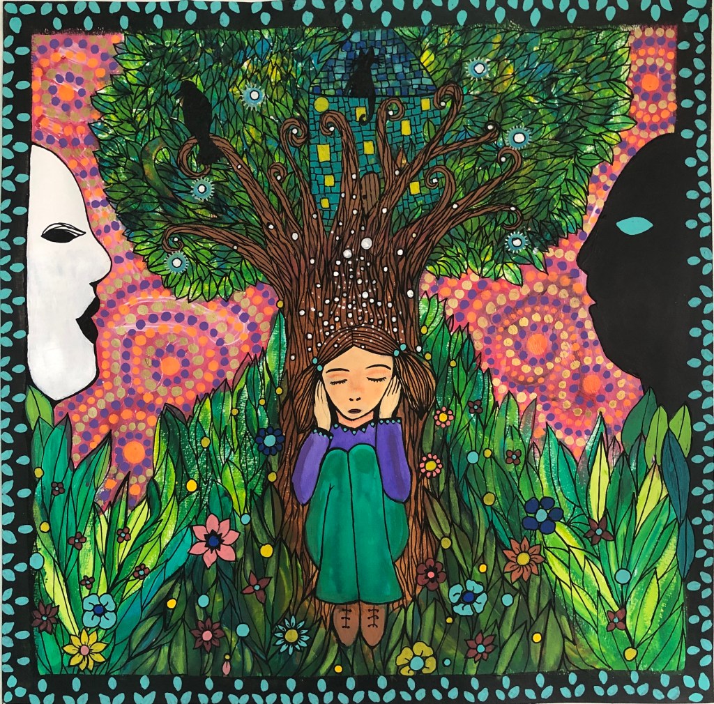 (Papier 300g, 50×50 cm, techniques mixtes)
