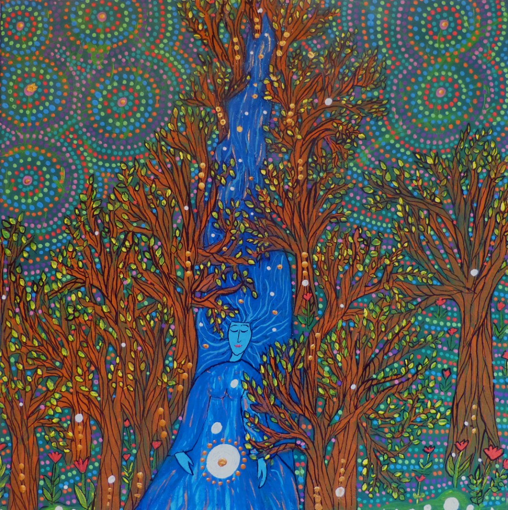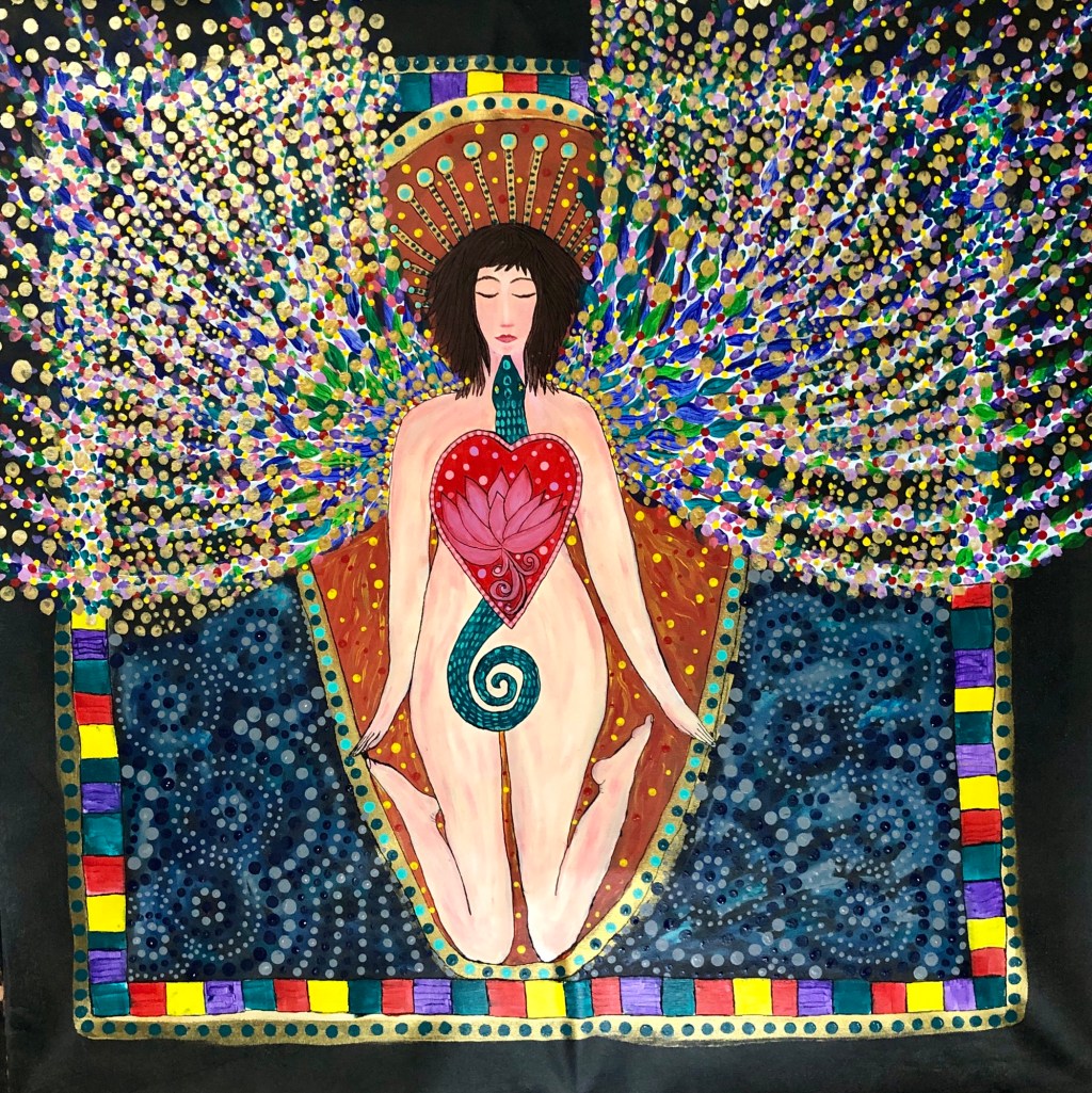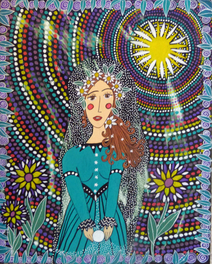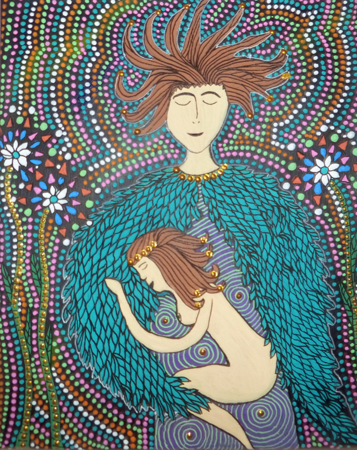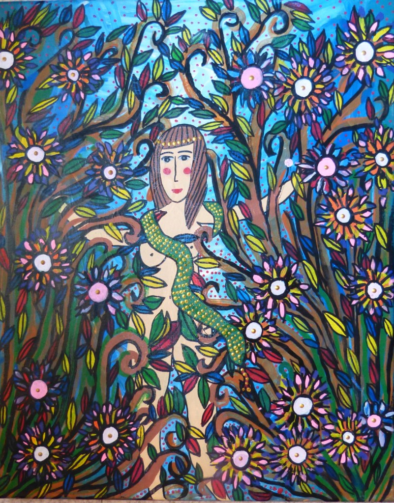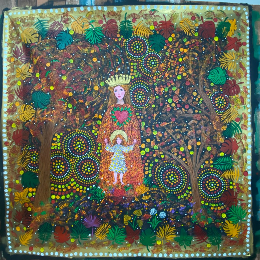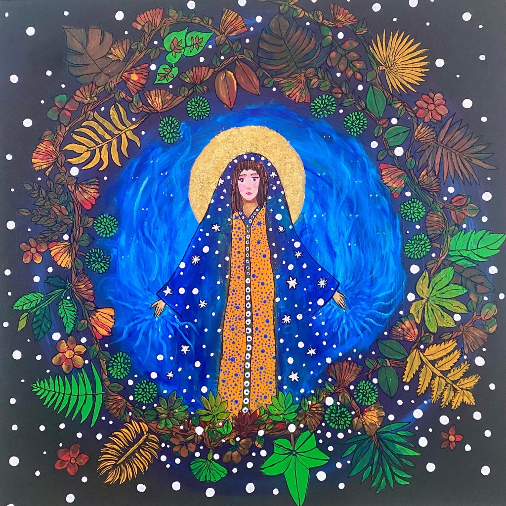 (Toile sur châssis 40×60 cm, acrylique et feuille d’or)