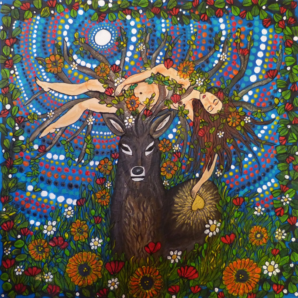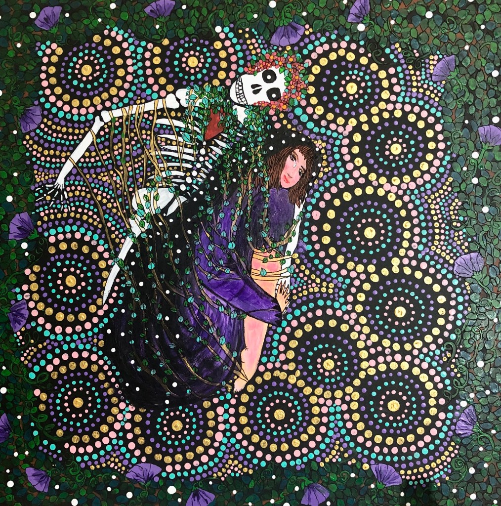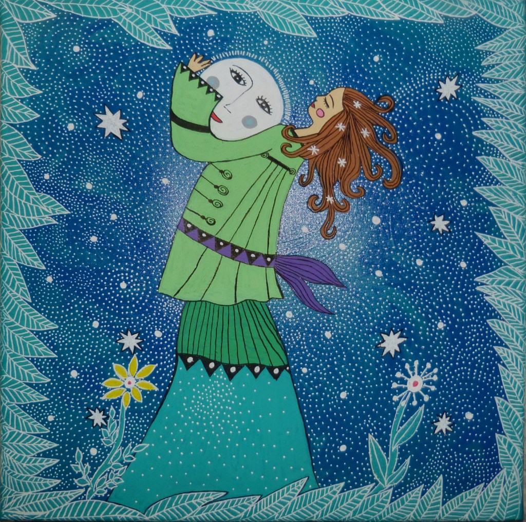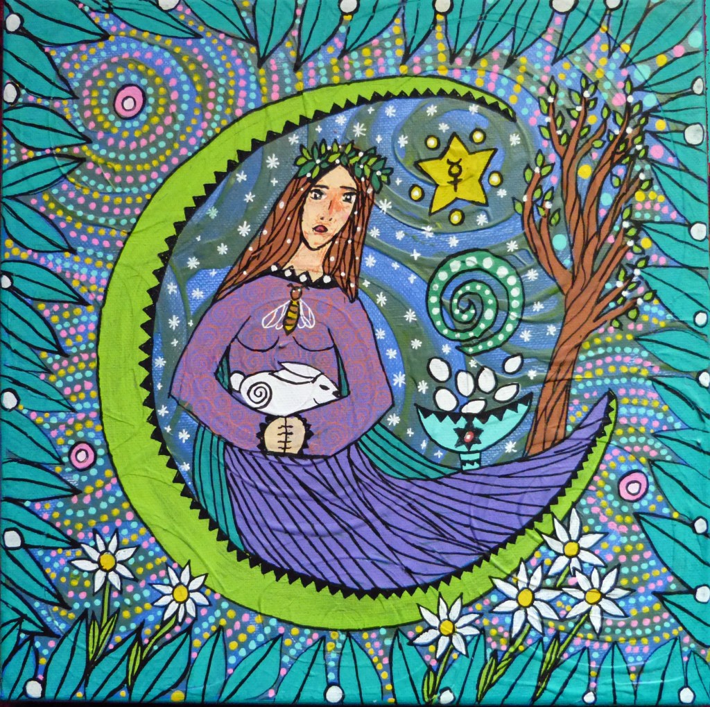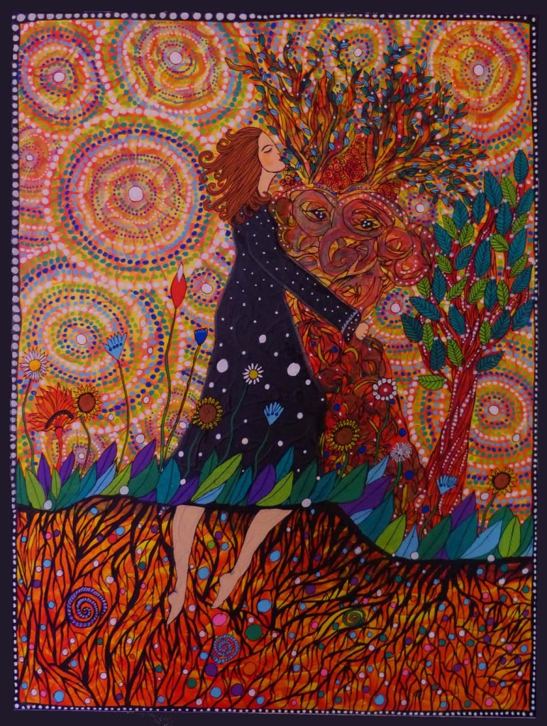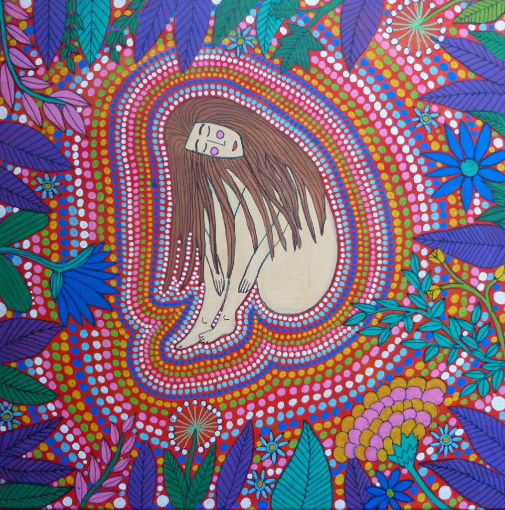 (Toile sur châssis 40×60 cm, acrylique et feuille d’or)