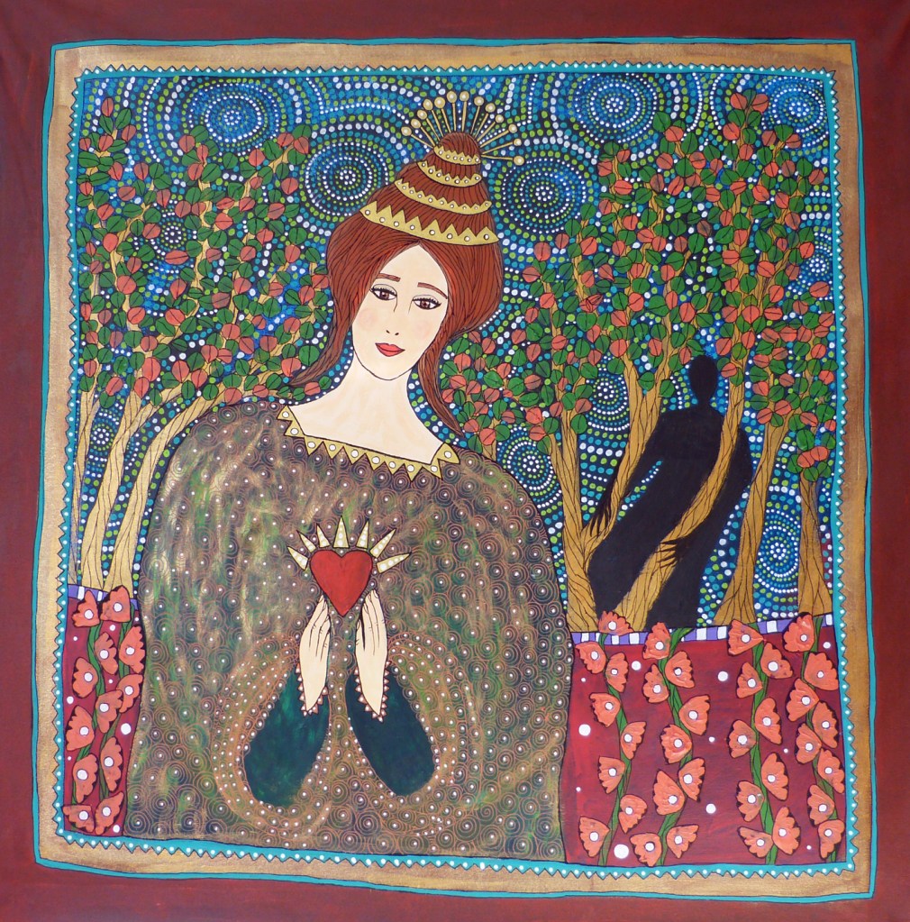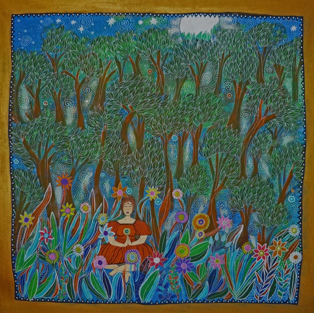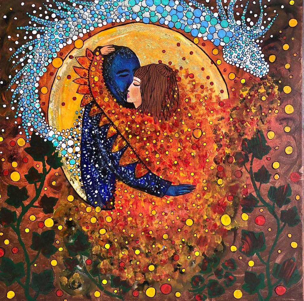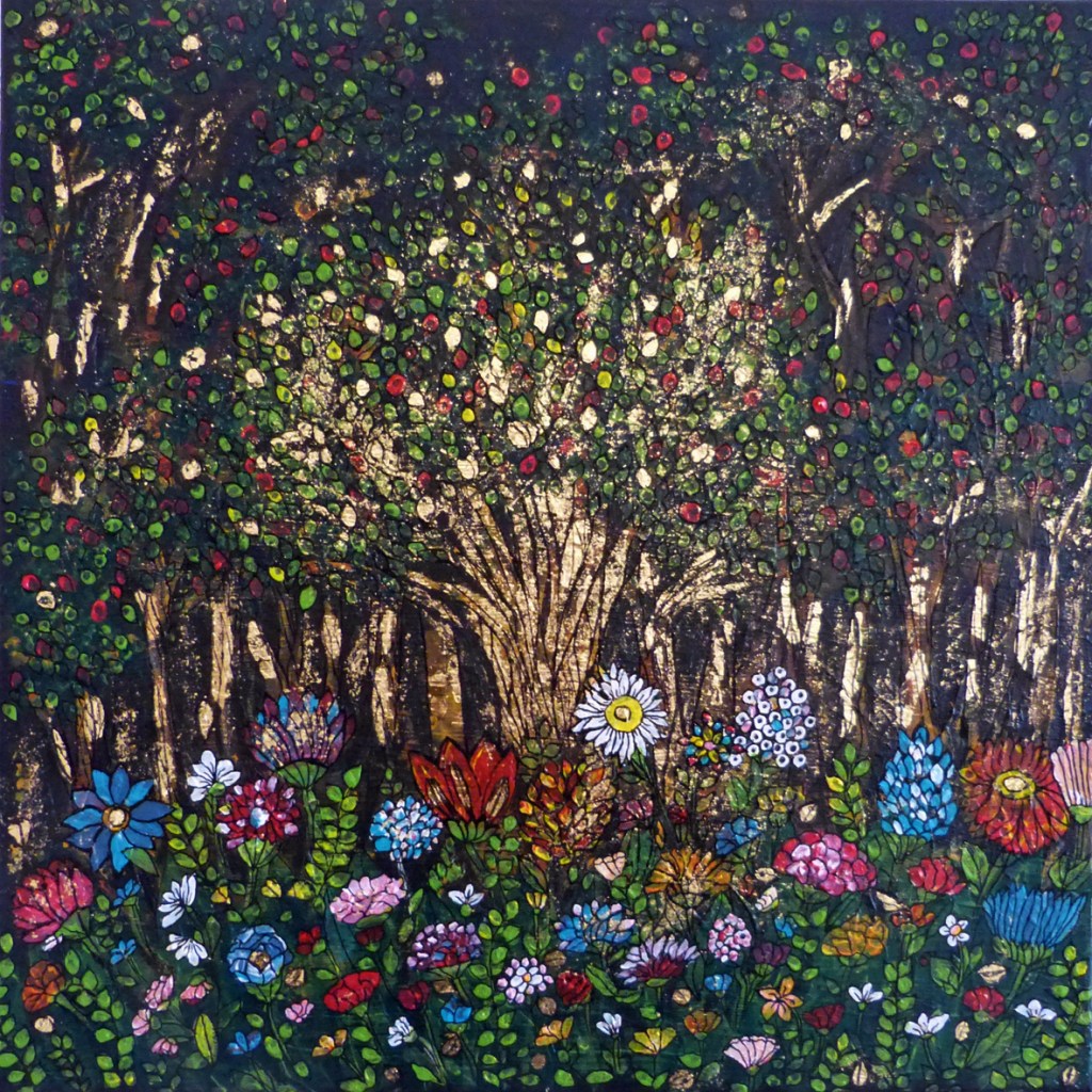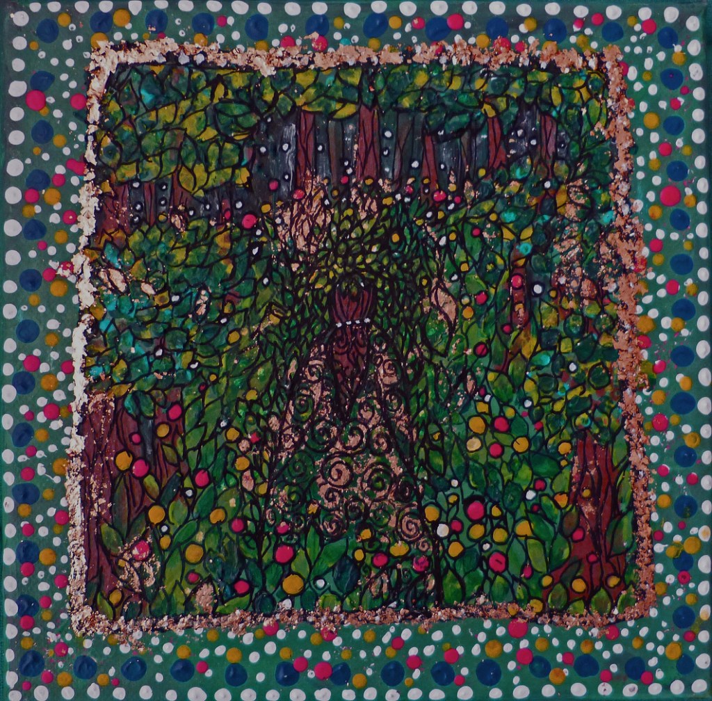 (Toile sur châssis 60×60 cm, acrylique, feuille d’or)