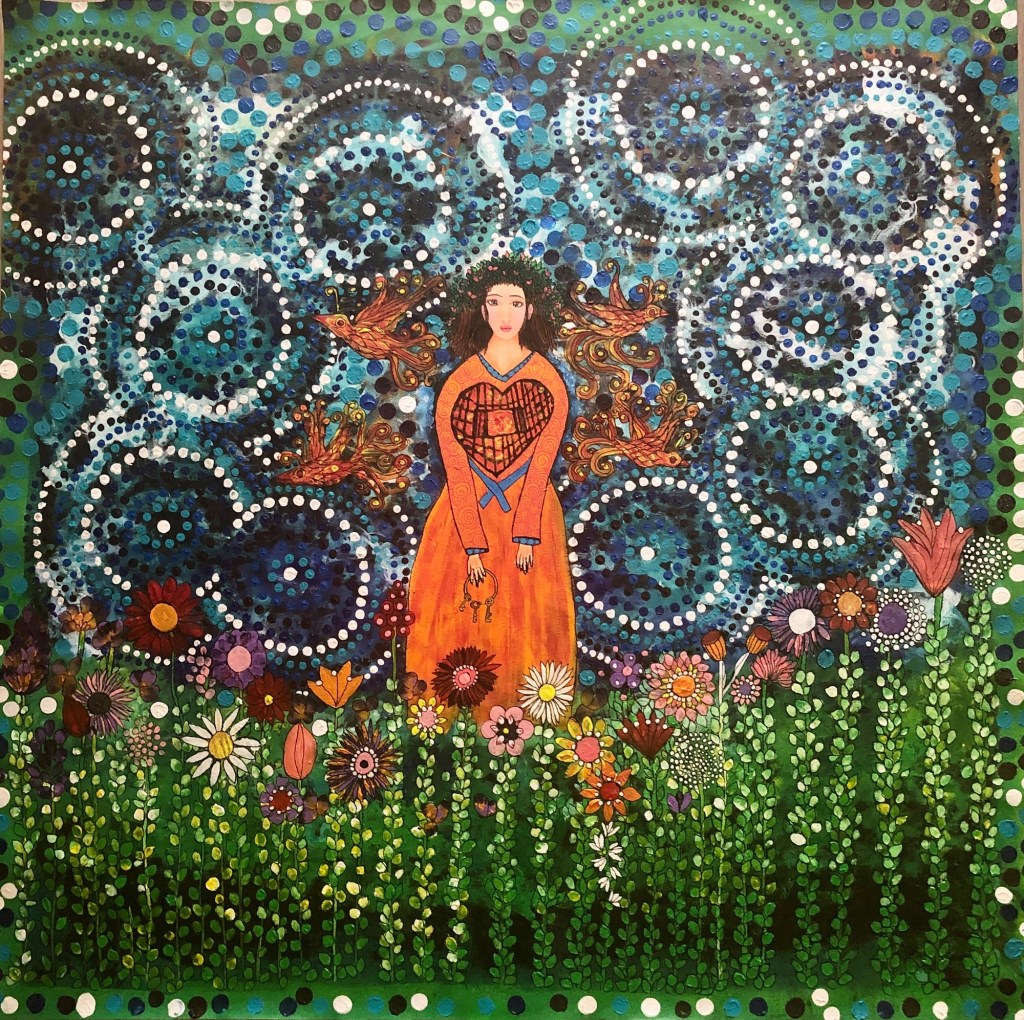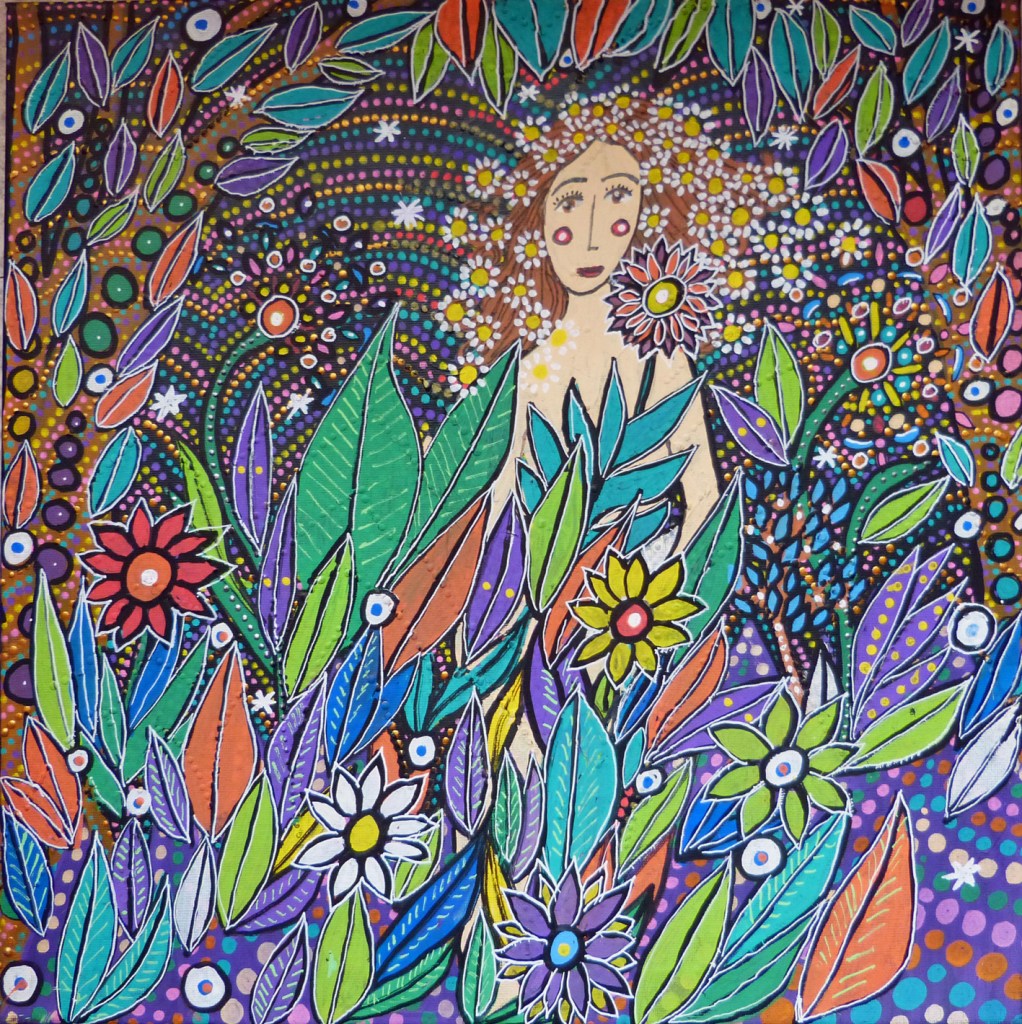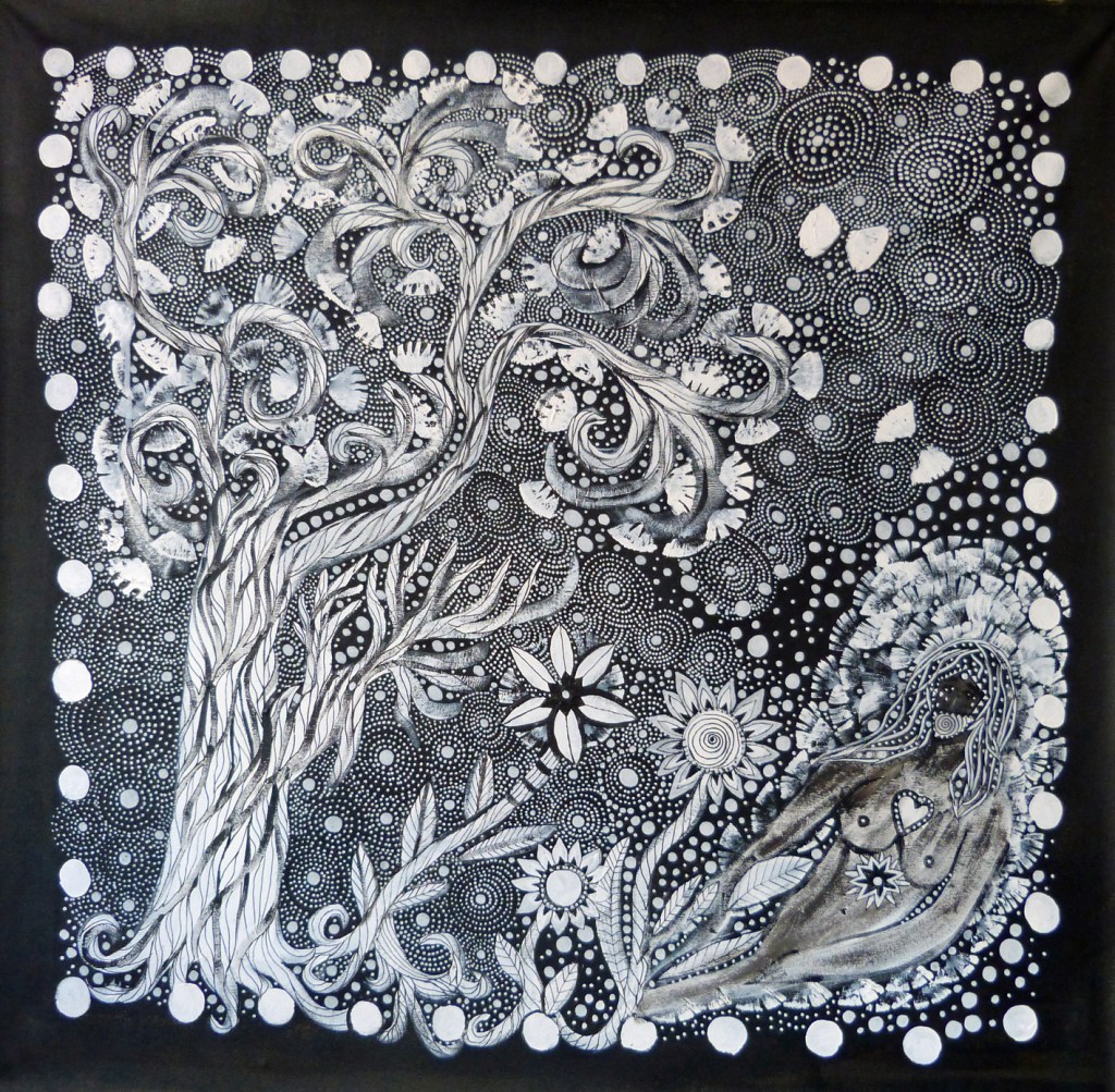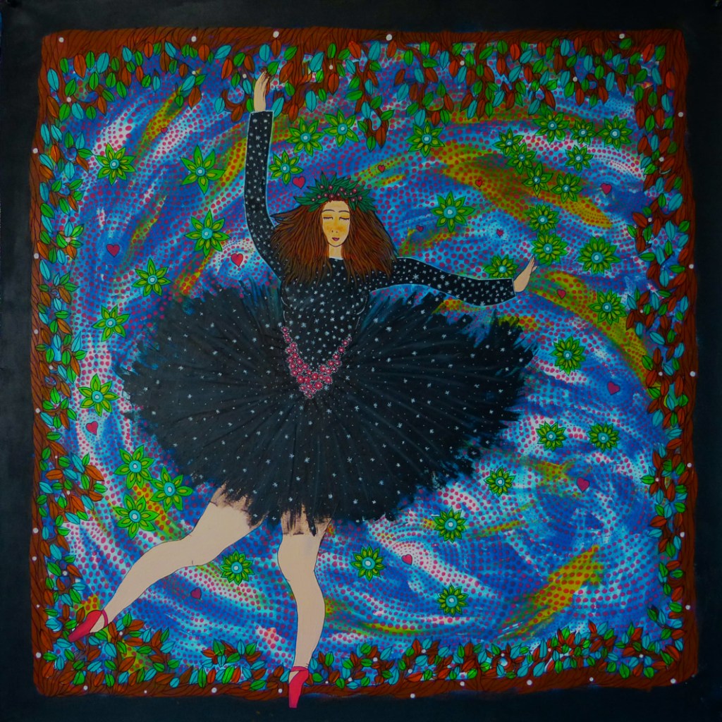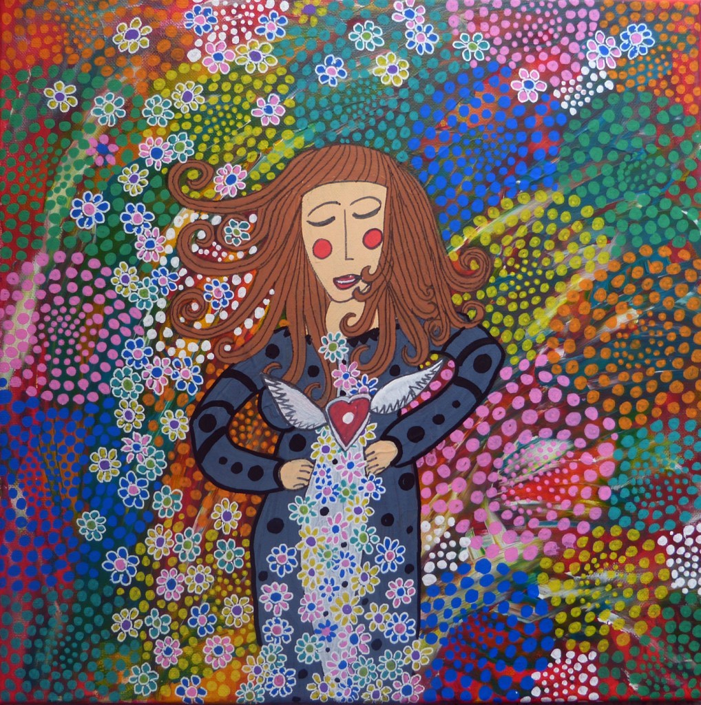 (Toile sur châssis 60×60 cm, acrylique, feuille d’or)