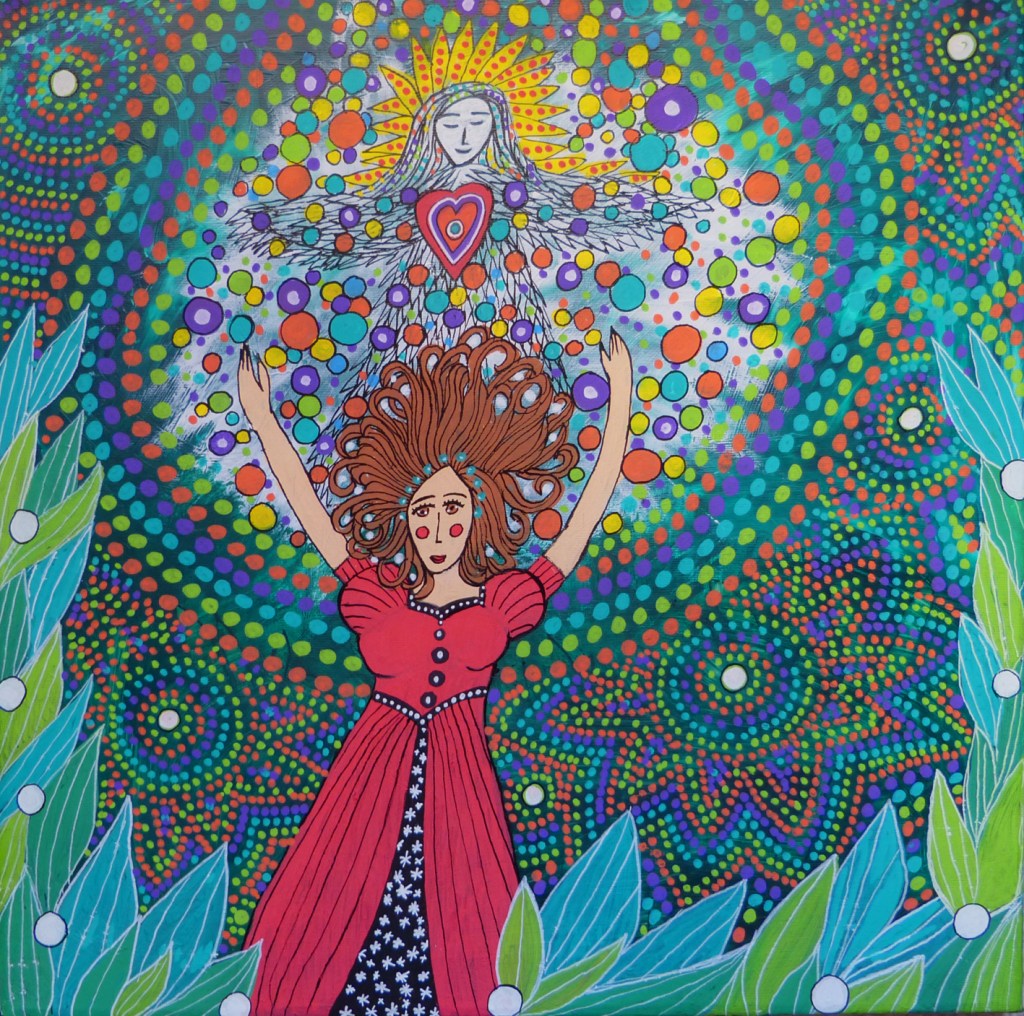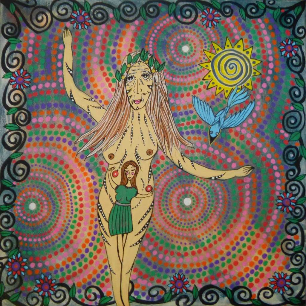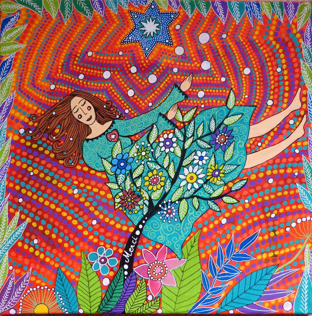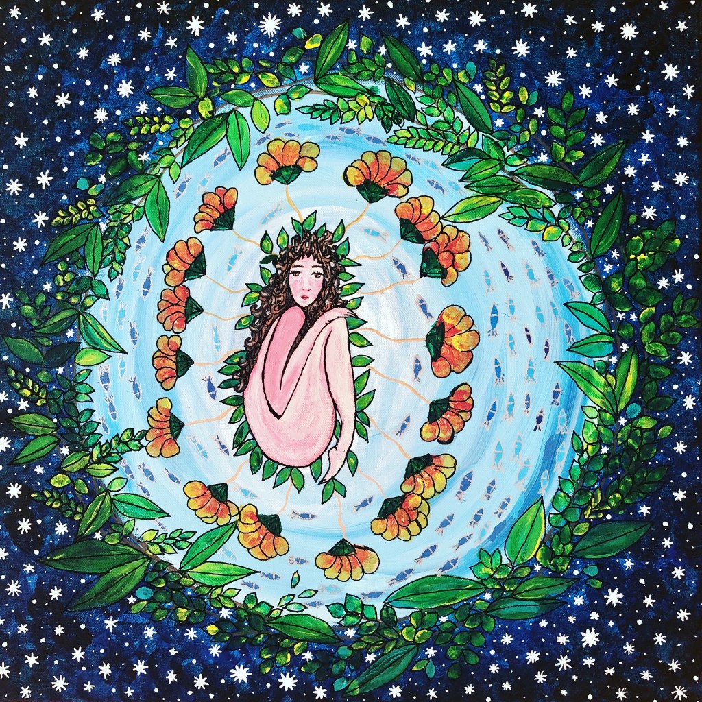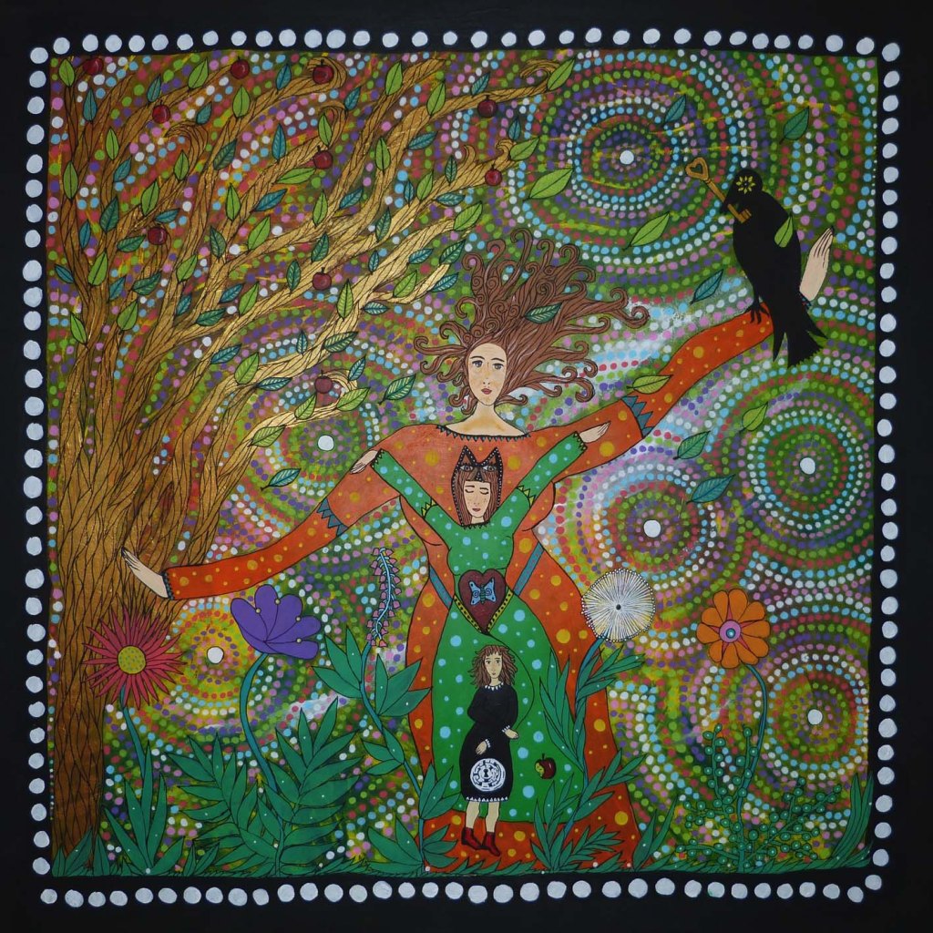 (Toile sur châssis 60×60 cm, acrylique, feuille d’or)