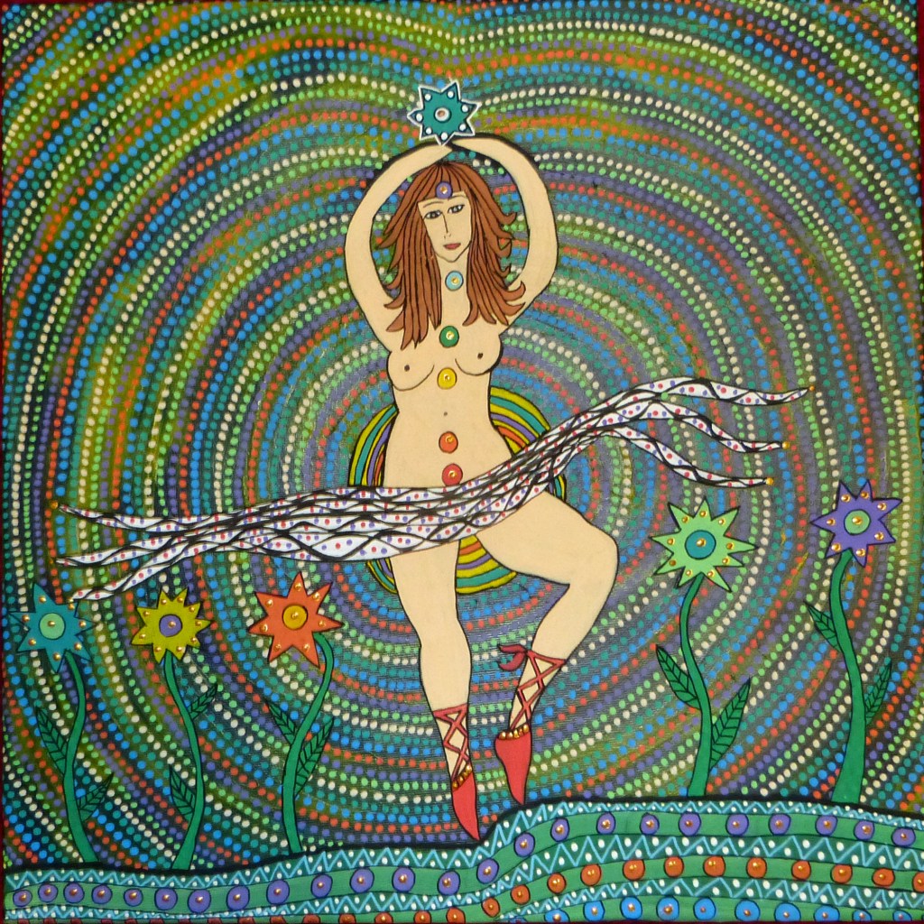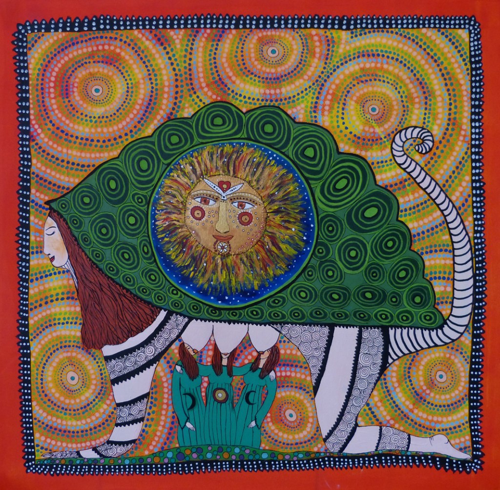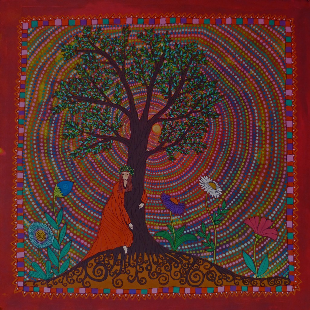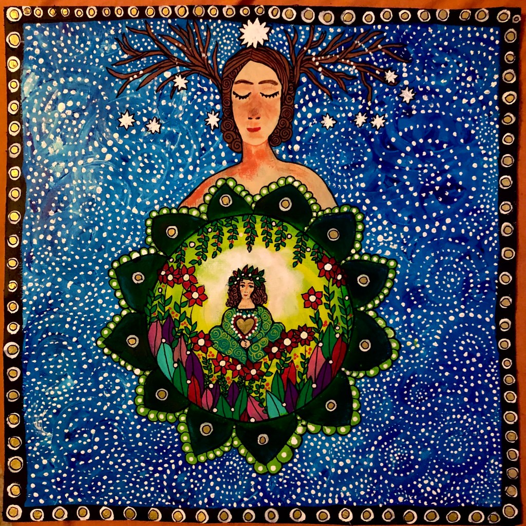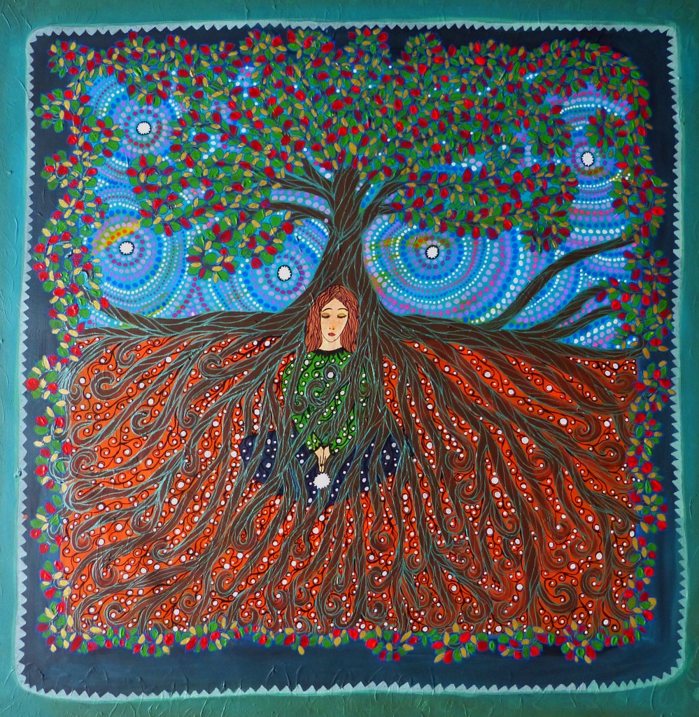 (Toile sur châssis 60×60 cm, acrylique, feuille d’or)
