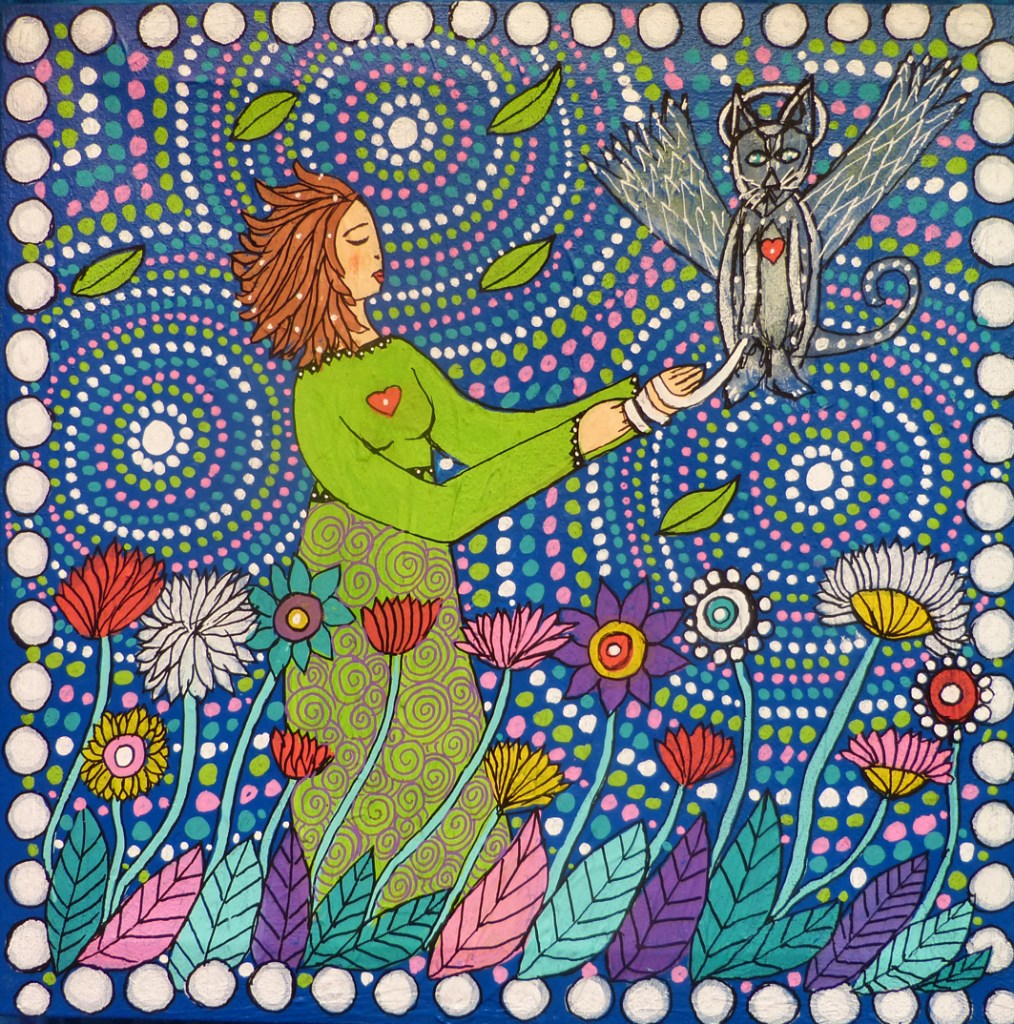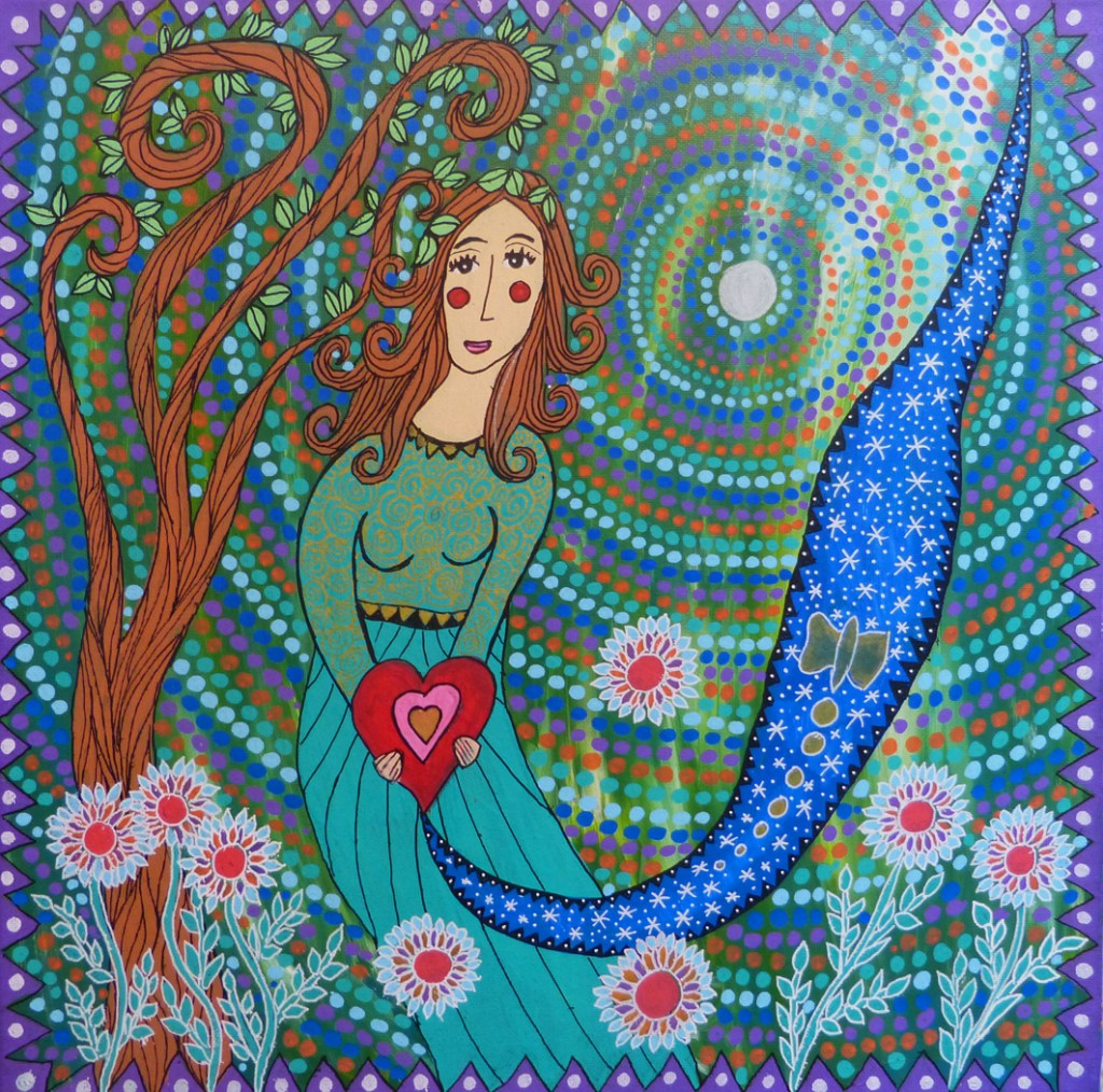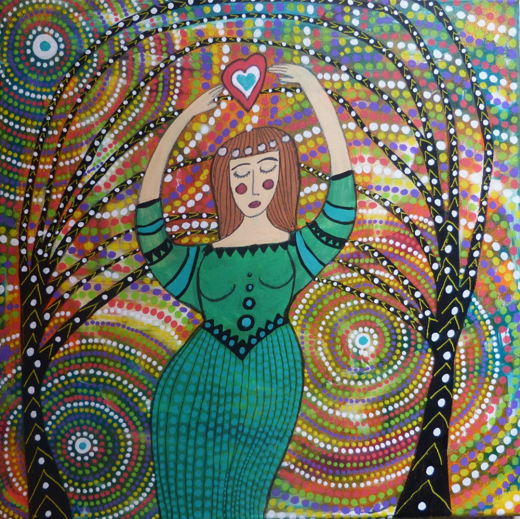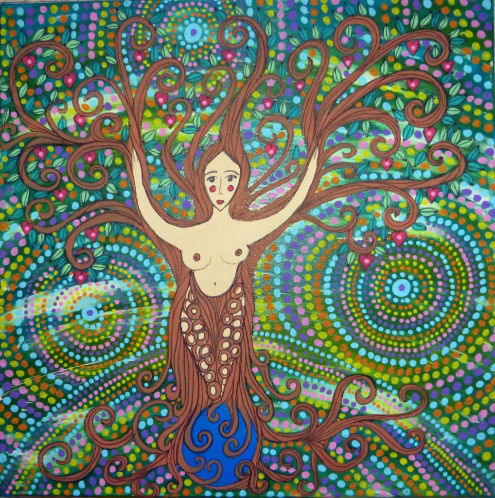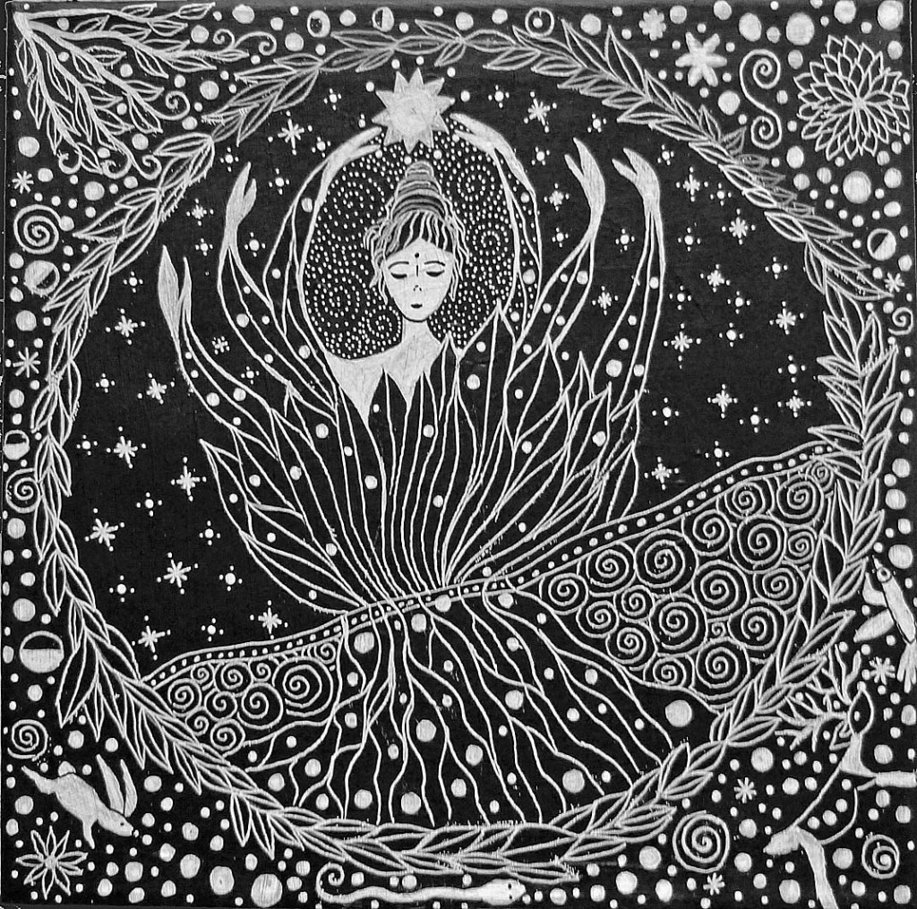 (Toile sur châssis 60×60 cm, acrylique, feuille d’or)