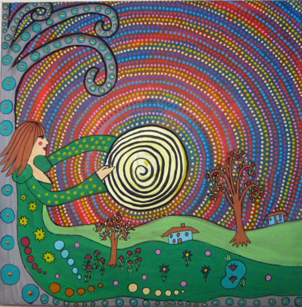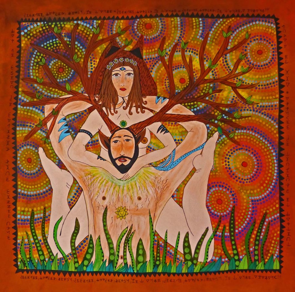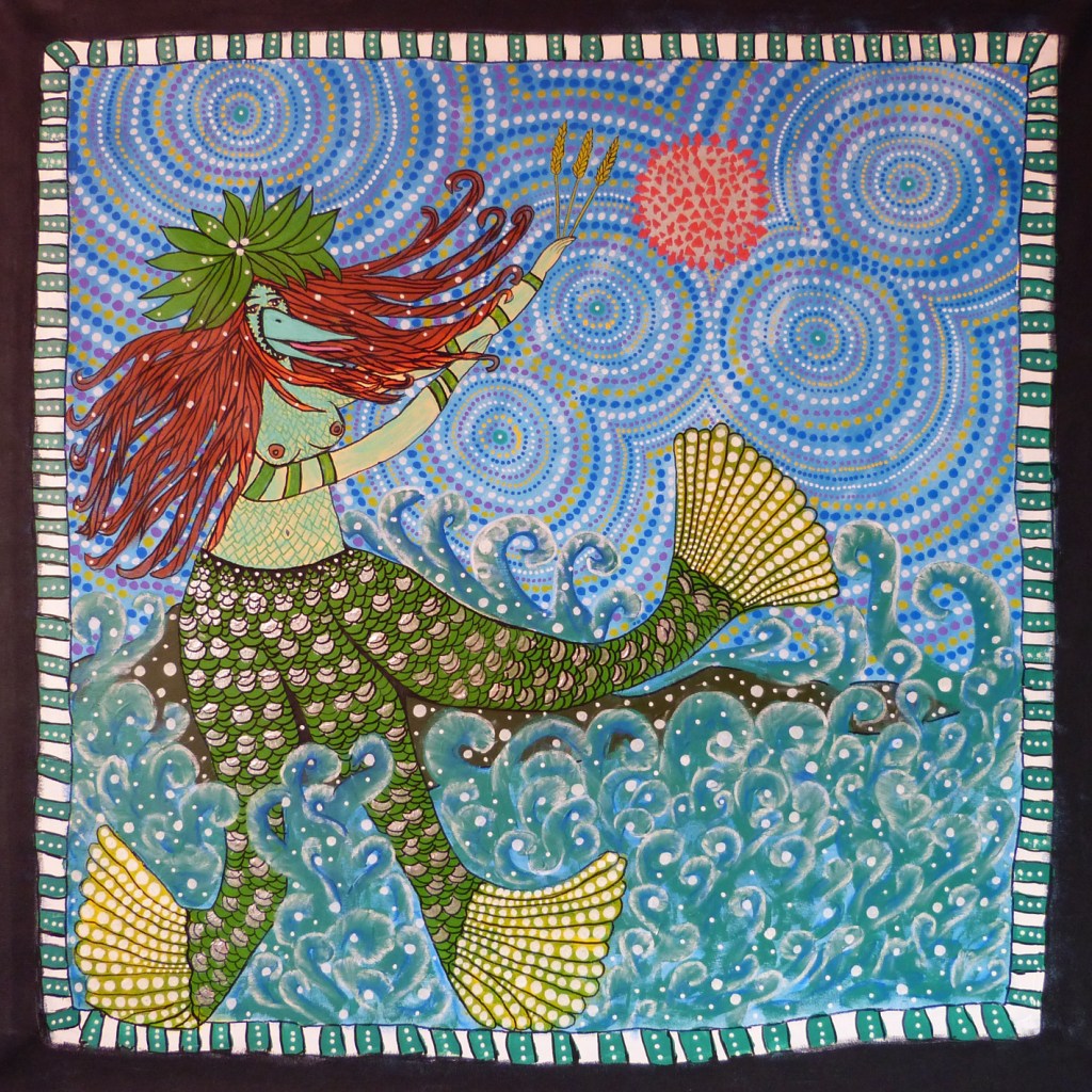 ( toile sans châssis 98×98, encollée sur bambous style tenture)