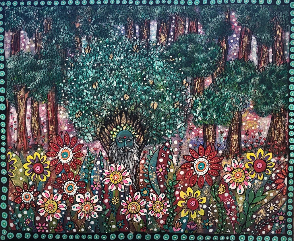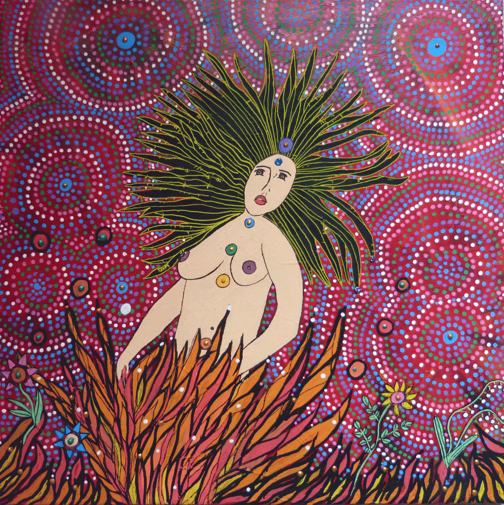 (toile sur châssis, 50×60 cm, techniques mixtes) juillet 2023